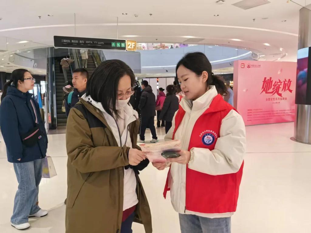 法律诊所成员们身着志愿者红马甲,热情地向参会者分发普法传单、讲解相关法律法规帮助女性求职者更好地了解自身权益。成员们还协助律师解答求职者在劳动合同和权益维护中的疑问,进一步增强活动的法律宣传效果。