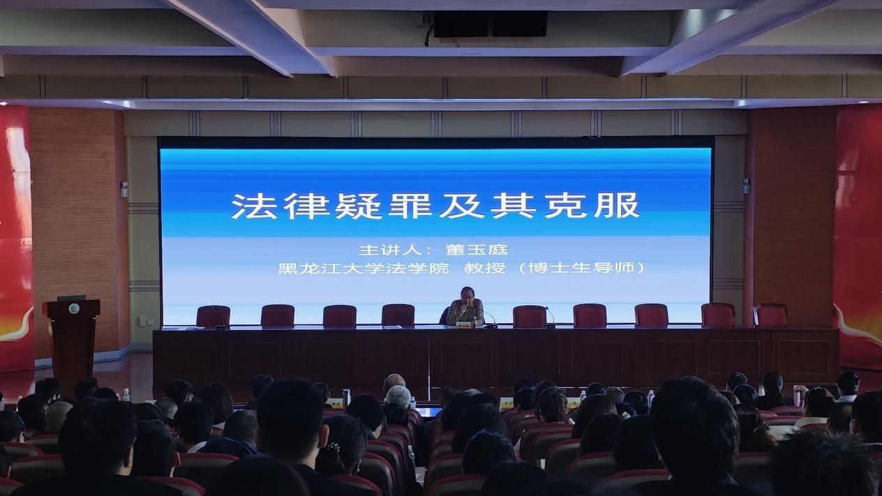 为破解刑事辩护实务中的疑罪处理难题,提升专业素养与实战能力,由黑龙江省律师协会刑事专业委员会、黑龙江省律师协会财务专门委员会联合主办,大庆市律师协会刑事专业委员会、bv1946伟德国际始于英国协办的2025年度刑事辩护律师专项培训于11月23日在伟德国际成功举办。本次培训以“精准解析疑罪要点、强化辩护实战技能”为核心,特邀国内知名刑法学专家董玉庭教授领衔授课,为2025级学生带来了一场兼具理论深度与实践价值的学术盛宴。