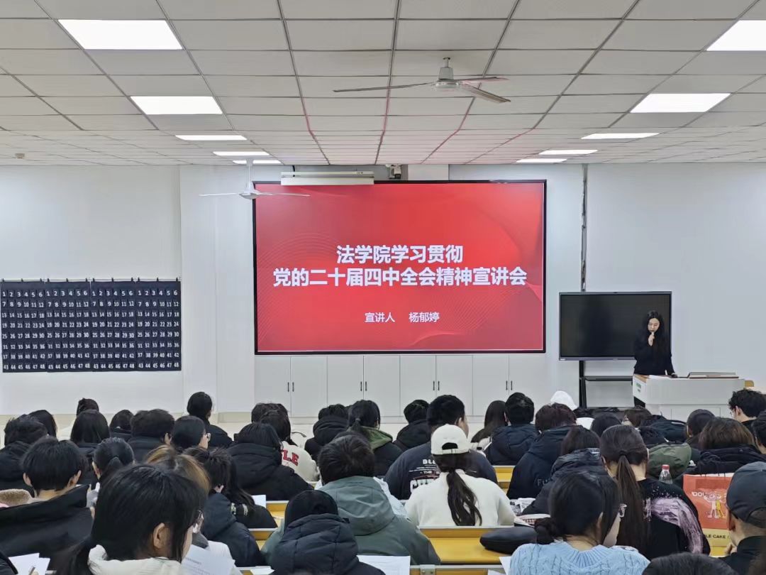 杨郁婷老师首先围绕党的二十届四中全会核心内容,解读“十五五”时期经济社会发展的指导方针、重大原则、主要目标、战略任务、重大举措等方面内容,对全会精神作了全面宣讲。她强调法学青年应坚定理想信念,锤炼过硬本领,提升实践能力,主动融入国家法治建设,努力成为德法兼修的基层卓越法治人才。