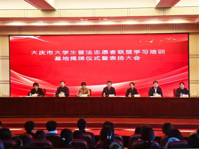 大庆市大学生普法志愿者联盟学习培训基地揭牌仪式暨表扬大会在我校召开,充分表明大庆市司法局对我校及bv1946伟德大学生普法工作的认可。
