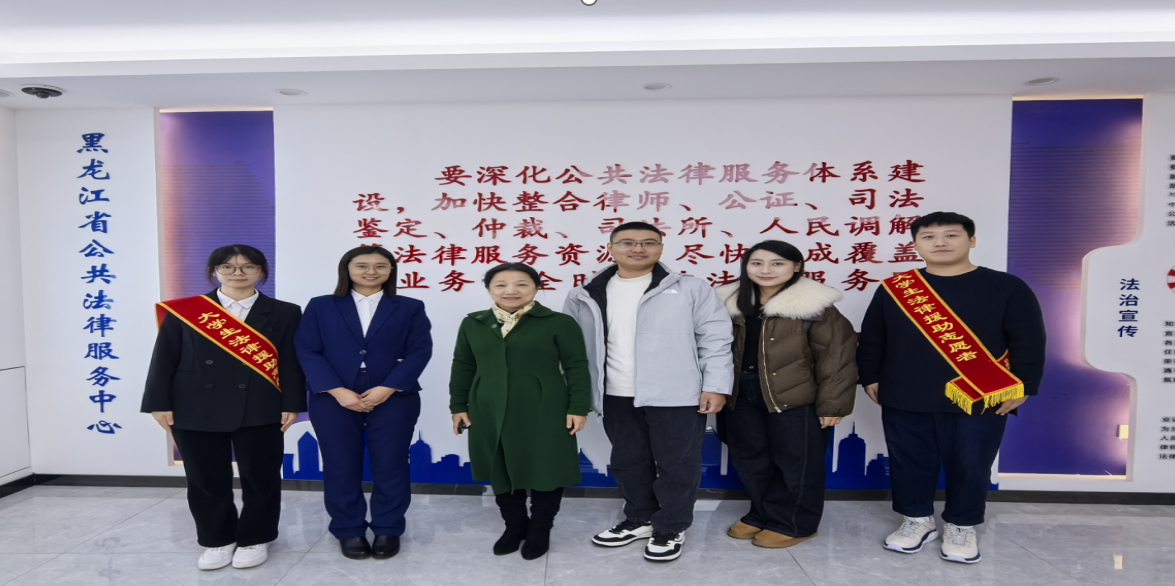 为深入贯彻落实《中华人民共和国法律援助法》《法律援助志愿者管理办法》《关于加强高校法律援助志愿服务工作的意见》,鼓励和引导高校师生积极投身法律援助志愿服务事业,推动法律援助志愿服务与法学教育双融双促,11月21日,黑龙江省法律援助高校联盟实践基地揭牌暨志愿者入驻公共法律服务中心统一行动启动仪式在省公共法律服务中心举行。我院教师佟金彪和学生受邀参加本次活动。