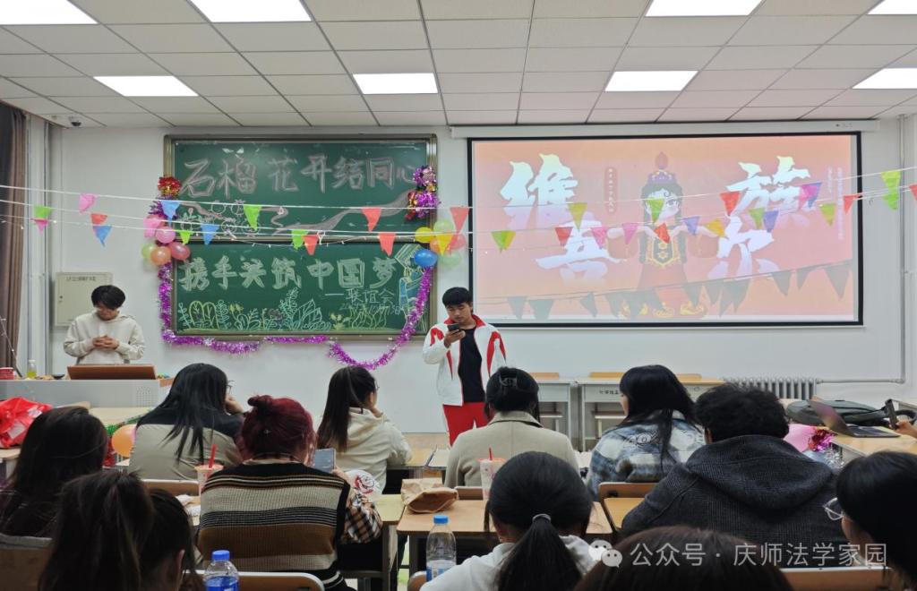 为深入贯彻落实习近平总书记关于加强和改进民族工作的重要思想,铸牢中华民族共同体意识,加强各民族交往交流交融,像石榴籽一样紧紧抱在一起,共同团结奋斗、繁荣发展。bv1946伟德于2024年10月13日下午在主楼212举办 “石榴花开结同心,携手共筑中国梦”联谊交友活动。辅导员老师陶雨朝主持本次活动,bv1946伟德少数民族学生与2024级知识产权专业学生积极参加。