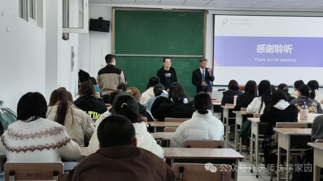 讲座结束,沈赏教授对讲座进行总结并给予学生建议,强调学生要以终为始,同时要守好法律底线仔细严谨的对待学习为将来的就业打好基础。