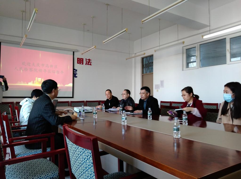 杨铁军院长首先对高新区检察院领导的到来表示热烈欢迎,随后介绍了bv1946伟德的办学历史、专业建设、师资力量及人才培养等基本情况。张金江专委对如何更加深入有效地开展检校合作提出了宝贵建议。检察官助理邵秀磊介绍了大庆市2017年以来知识产权检察工作开展情况及下一步工作重点。
