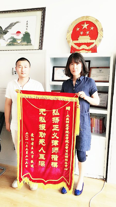 王先生的锦旗,不仅让我们看到了人们对法律工作者的尊重,也看到了人们法律意识的不断增强,更让我们增强了将法律服务中心延续下去的信念。社会的认可将成为我们继续努力的不竭动力。