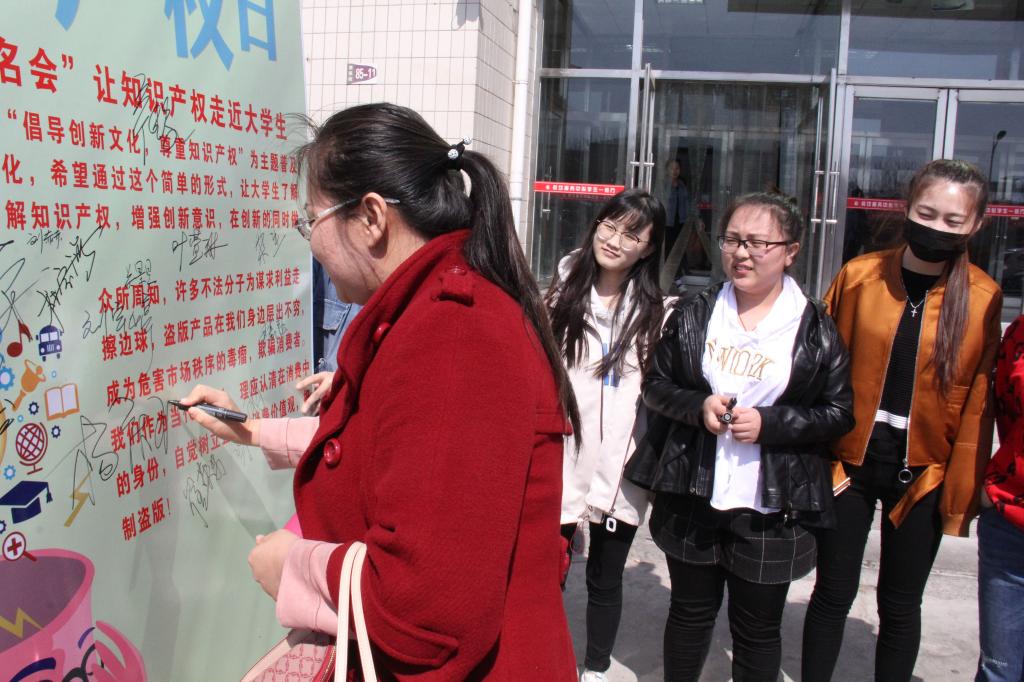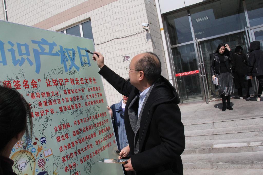 bv1946伟德通过此次知识产权宣传活动旨在为广大在校学生树立尊重知识、崇尚科学,保护知识产权的意识,营造鼓励知识创新和保护知识产权的法律环境,在创兴的同时做好必要的保护工作。活动开展过程中乔志和校长亲自来到现场,负责宣传同学详细的向校长介绍了“世界知识产权日”的来历和发展历程。乔志和校长认真听完讲解后,一边赞赏同学细致入微的讲解,一边鼓励在场工作人员并在签字板前与同学们一同签字合影留念。bv1946伟德学生不但分发知识产权宣传页,而且同时积极为全校同学介绍什么是知识产权与如何从自身出发保护知识产权,并邀请同学们在签字版前完成签字,共同承诺践行对知识产权的尊重和保护。