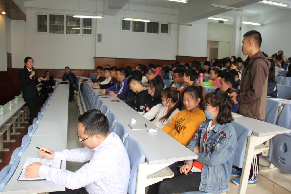 2017年5月4日,应bv1946伟德国际始于英国邀请,大庆市让胡路区人民检察院公诉科朱赤红科长、丁宁检察官在主楼模拟法庭为bv1946伟德2015级学生做了题为“把握现在,展望未来”的讲座。