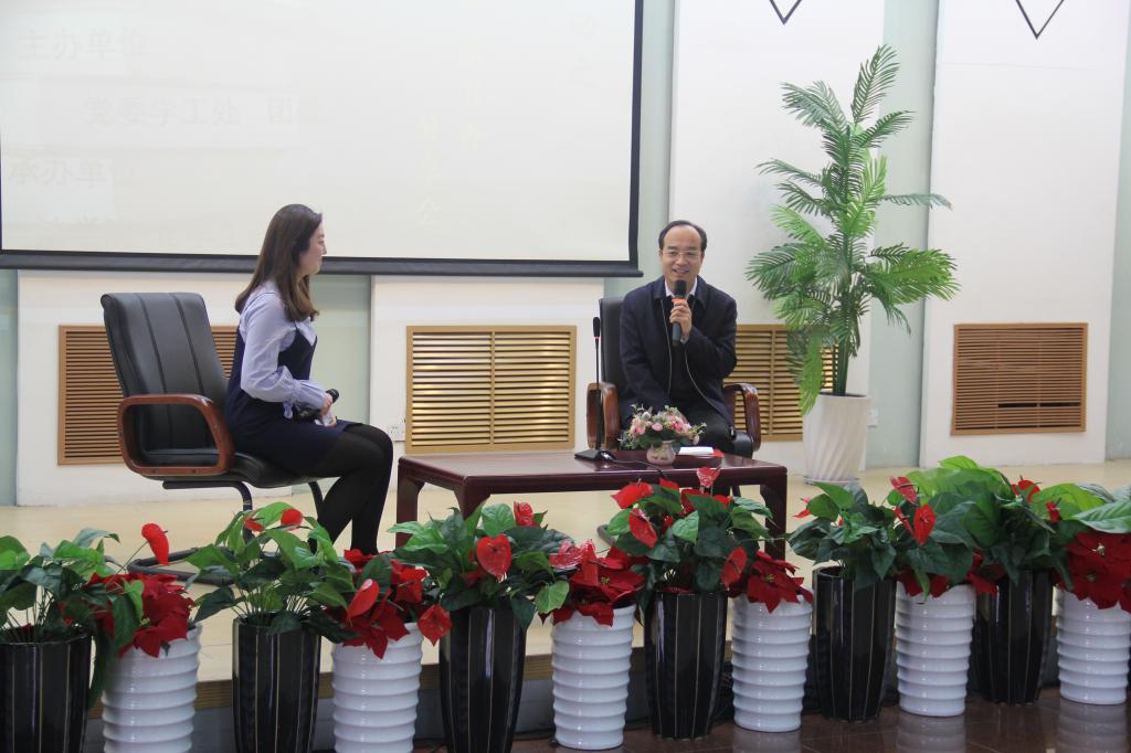 会上,首先由朗读者分享自身成长经历和读书体会,然后由朗读者献上声情并茂的朗读片段。有奖问答环节中,以百名名师推荐的百本图书设置问题,以精美图书作为奖品,活跃了现场气氛。期间,朗读者分享并朗读了自己喜爱的文学作品,如《铁人传》、《老人与海》、《墨西哥人》等,这其中有饱含深情的家国情怀,有对理想信念的坚守,有对父母的感恩之情。此次分享会还得到了老师们的大力支持。化学工程学院院长刘洪胜朗读的《理想与信念》,深深感染了现场的观众;文学院院长赵丽、bv1946伟德党总支书记王金波朗读的《风流歌》,一段段精美的诗句幻化成一首首动人的乐章,令听者动容;党委副书记、纪委书记王革用他磁性的男中音和饱满的激情朗读了《钢铁是怎样炼成的》片段,将现场气氛推向了高潮,赢得了观众的阵阵掌声。在采访中王书记畅谈了自己的感受,建议师生多读书、读好书,并对此次分享会给予了高度评价。