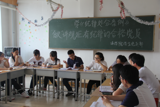 最后吴书记强调,希望大家能够带头发挥先锋模范作用,在用《条例》和《准则》规范自己的日常学习生活之外还要带领同学们一起规范日常学习生活中的不良行为,改正不足,树立良好的生活和学习风尚。