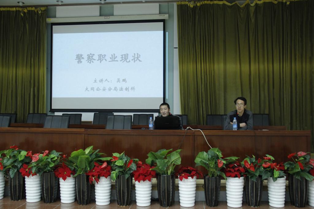 2016年4月22日下午6点在铁人讲堂举办了法庭教学课程的第四场报告会,由大同公安分局法制科吴鹏科长为bv1946伟德2013、2014级学生做了题为“警察职业现状”的报告。