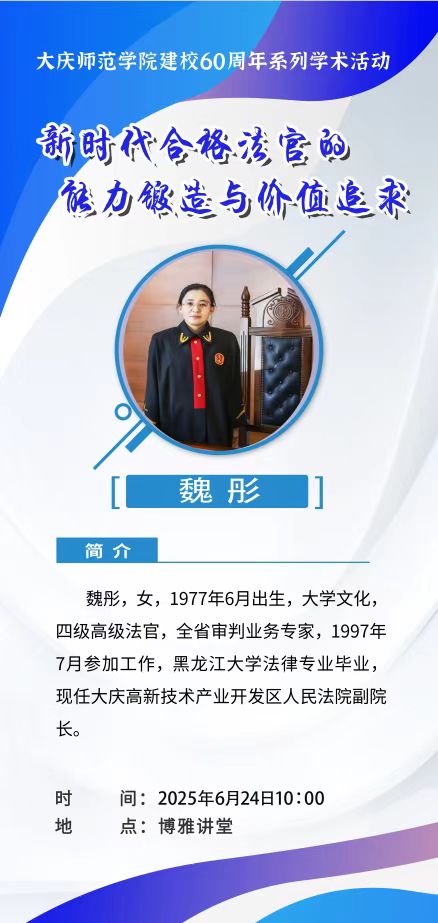 讲座通知 | 新时代合格法官的能力锻造与价值追求—魏彤