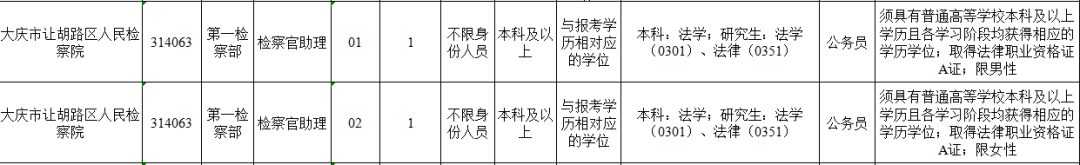 黑龙江省2026年度公务员考试公告正式发布大庆市让胡路区人民检察院共计划招录公务员2人