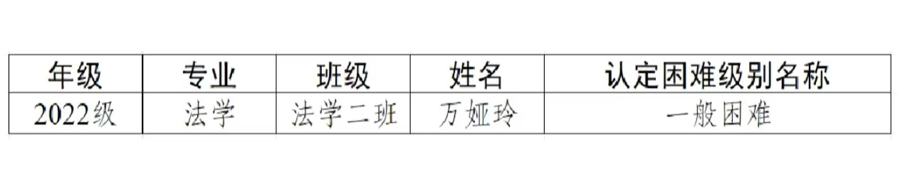 根据《教育部等六部门关于做好家庭经济困难学生认定工作的指导意见》(教财〔2018〕16号)、《黑龙江省家庭经济困难学生认定办法》(黑教规〔2019〕9号)关于“家庭经济困难学生认定工作每学期要按照家庭经济困难学生实际情况进行动态调整”要求及《伟德国际家庭经济困难学生认定办法》(庆师发〔2023〕30号)文件,本着公平、公正、合理、精准的原则,经个人申请、资格审查、班级民主评议、年级认定工作小组认定、学院党政联席会议审定。我院2025-2026年春季学期共有1名学生申请认定为家庭经济困难学生,现将名单予以公示。