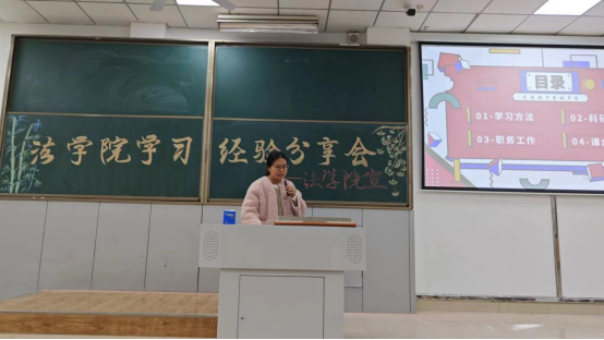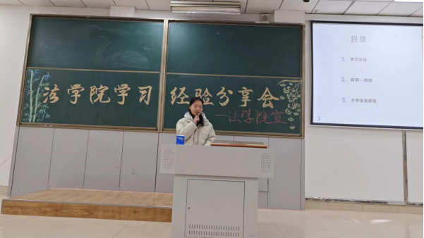 彭婉婷同学主要讲了自己的备考过程,很多考试都是在大三进行:司法考试,教师资格证,还有研究生考试的备考,她告诫同学们大学的学习任重而道远,要尽早规划自己的未来。