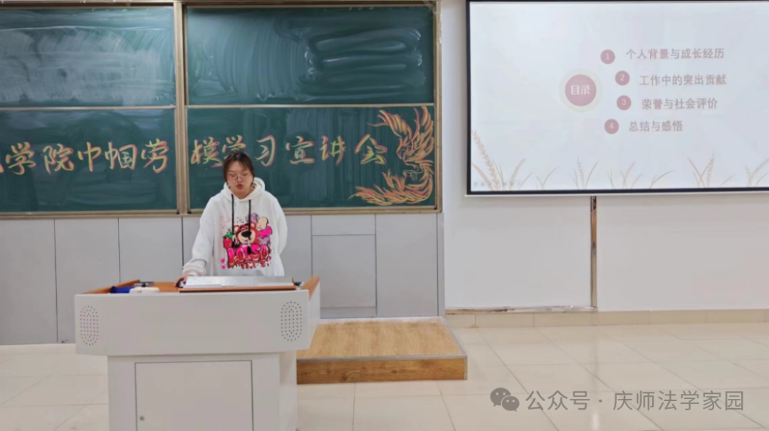 2024年4月8日晚18:30,为深入学习贯彻习近平新时代中国特色社会主义思想和党的二十大精神,贯彻落实习近平总书记在黑龙江考察时的重要讲话重要指示以及致大庆油田发现60周年的贺信精神,进一步提高学生对“劳动精神、劳模精神、工匠精神”内涵的深刻认识,感召学生勇担历史使命,把人生理想融入国家富强民族复兴的伟大事业中,bv1946伟德于主楼2-2教室中举行了“bv1946伟德巾帼劳模学习宣讲会”,2023级全体学生按时进入教室听讲学习。