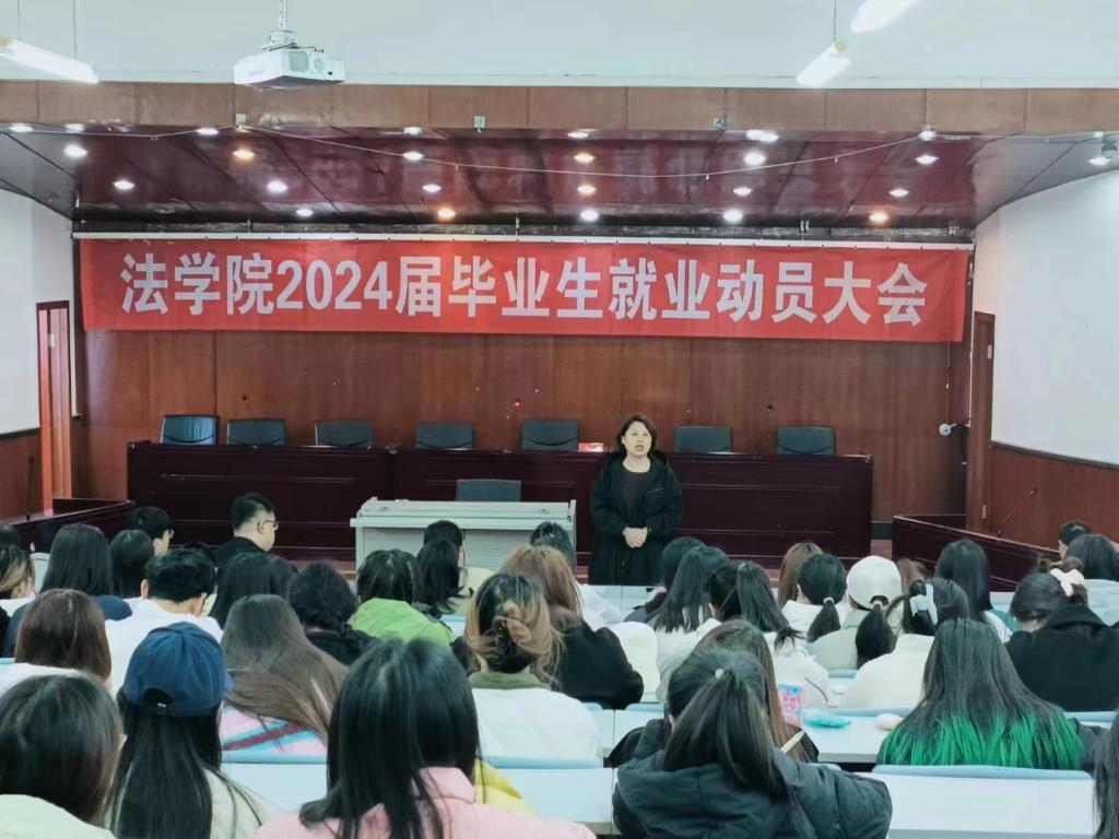 为全面推进学院2024届毕业生就业工作,引导毕业生树立正确的就业观念,提高就业积极性和主动性。11月3日上午,我院在模拟法庭召开2024届毕业生就业动员大会,会议由张彪副主任主持,党总支书记唐莉参加会议。