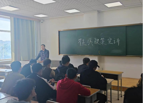 宣讲会上,张彪老师详细解读了大学生应征入伍条件,重点介绍了大学生参军入伍的优待政策及黑龙江省激励大学生参军入伍的措施,号召同学们把握机遇,积极响应祖国和时代的召唤,踊跃报名参军入伍,让自己的人生理想在强国建设、民族复兴的进程中发光发热。
