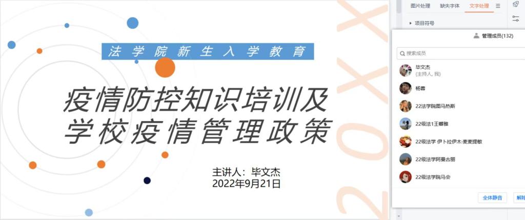 2022年9月11日-25日,bv1946伟德通过线上渠道开展了新生入学教育系列活动,本次活动由教学副院长杨庆玲、学生办公室主任张彪、专任教师沈赏、辅导员毕文杰主讲,2022级辅导员毕文杰全程主持。