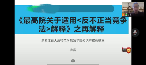 bv1946伟德联合市社科联及市法学会开展“知识产权宣传周”活动之学术讲座,讲座由bv1946伟德副教授沈赏老师就“最高院关于适用< 反不正当竞争法>解释之再解释”问题在腾讯会议平台主讲,讲座由bv1946伟德章辉教授主持。bv1946伟德师生、大庆市法学会、大庆市社科联等单位也参加了本次讲座活动。