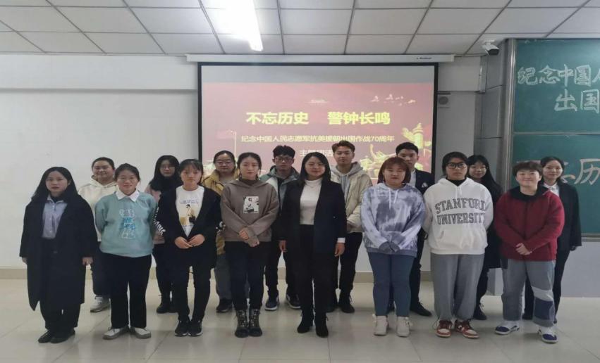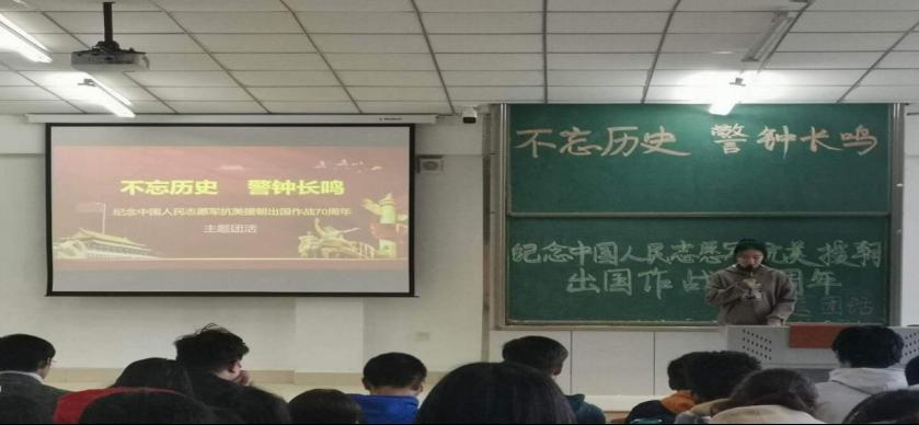 今年是中国人民志愿军抗美援朝出国作战70周年,为宣传志愿军的英雄事迹和革命精神,激发在校大学生的爱国情怀,2020年10月28日下午1点30分,bv1946伟德团总支在主楼4-2室举办了“不忘历史、警钟长鸣”主题团活,以此纪念中国人民志愿军抗美援朝出国作战70周年。辅导员曹丽秋老师和全体2020级学生参加了此次活动。
