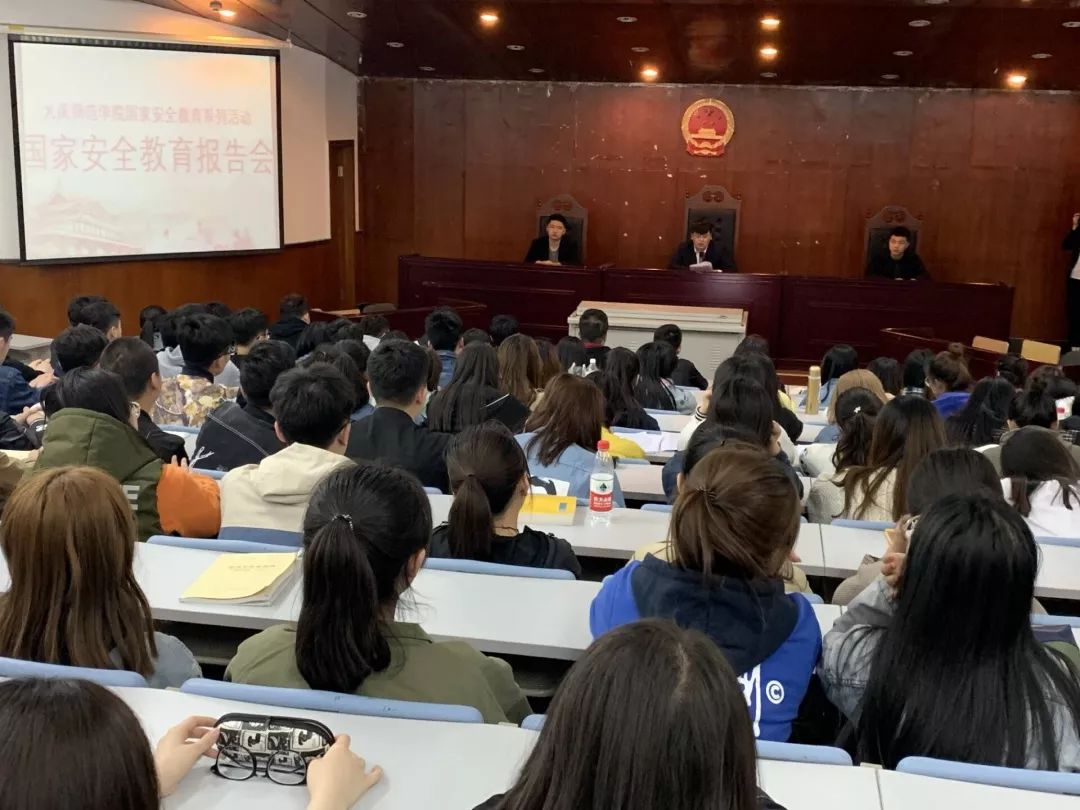 组织全体学生于模拟法庭观看国家安全教育影片。不断提高全体学生的敌情意识、保密意识、防范意识、支持配合国家安全工作意识,使全体学生自觉履行维护国家安全、保守国家秘密的义务。