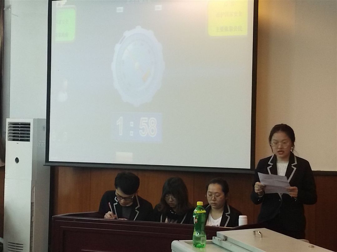 以“维护国家主权主要需要依靠公民,还是主要需要依靠政府”为主题展开辩论,双方辩友各抒己见,以流利的语言,赢得全场热烈掌声,并将赛事推向高潮。让学生在潜移默化中加深对国家安全教育的认识。