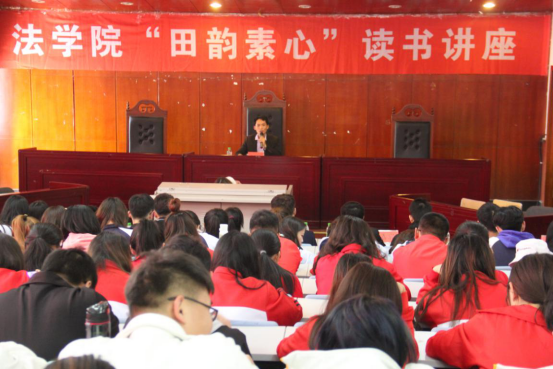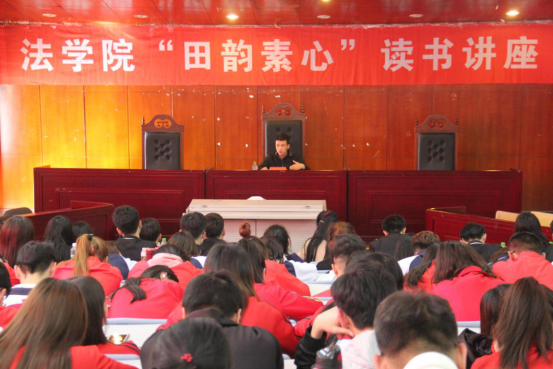 2019年4月10日14时,伟德国际校团委主办,bv1946伟德承办的第四届读书月活动 “田韵素心”读书讲座在模拟法庭举行。莅临嘉宾有校团委老师李浩源、bv1946伟德学生党支部书记吴树春、团总支书记苑立杰,主讲人由厦门大学法学博士、副教授李店标和2019届优秀毕业生代表赵福乾担任。