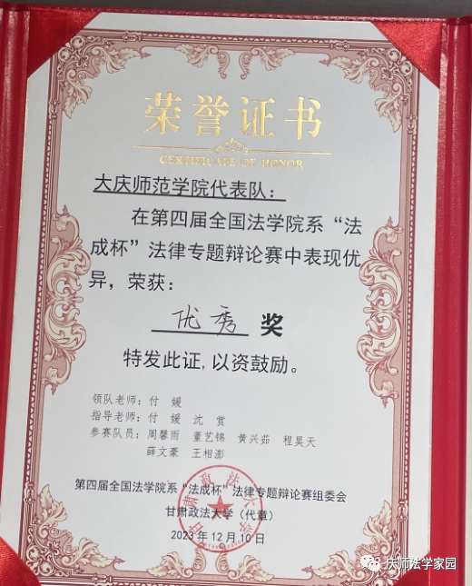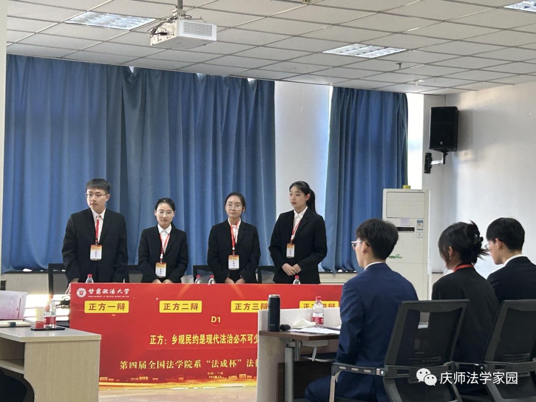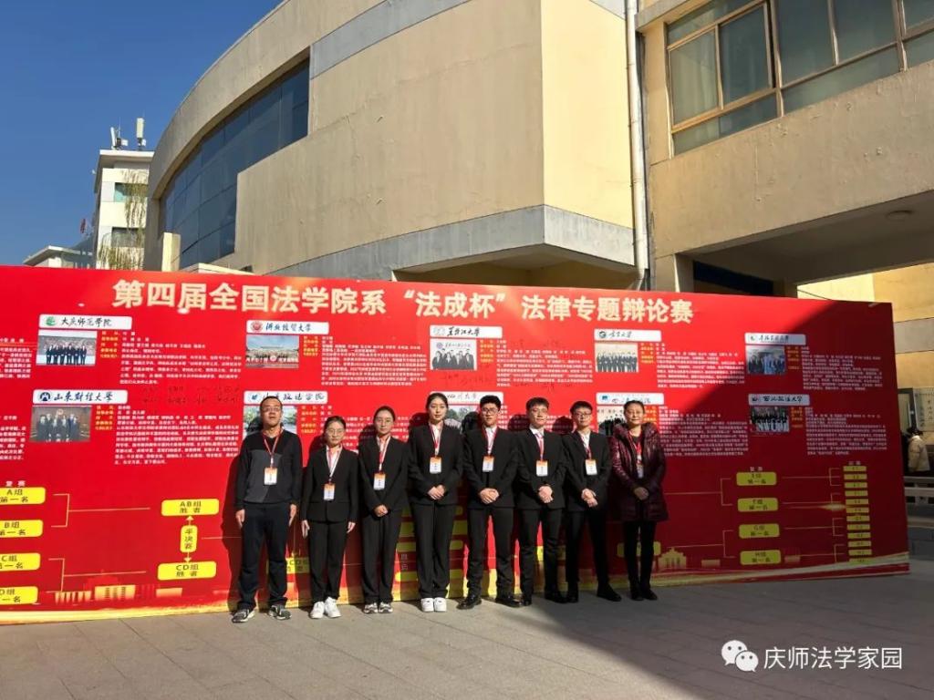 我院由付媛、沈赏担任指导老师,2021级学生黄兴茹、董艺锦、周馨雨、王相澎、薛文豪、程昊天组成的“庆师尚法队”参加比赛。